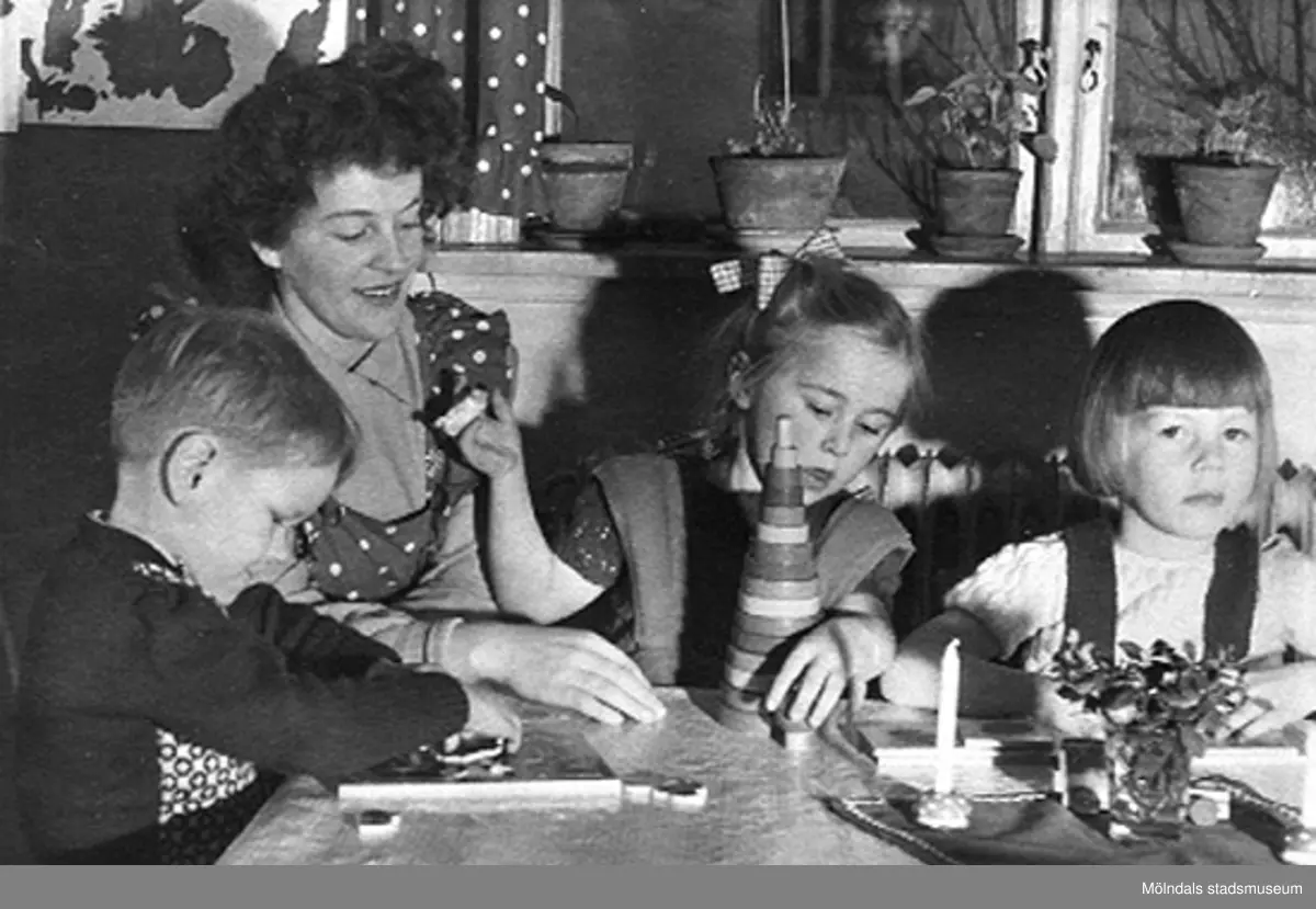 Bitr. föreståndare Margit Emilsson (gift Wannerberg -52) sitter tillsammans med två syskon och ett annat barn i