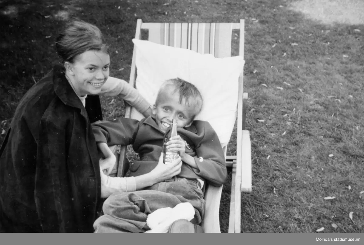Ulla och Christer från Stretereds skolhem på utflykt till Slottsskogen i Göteborg, 1964.