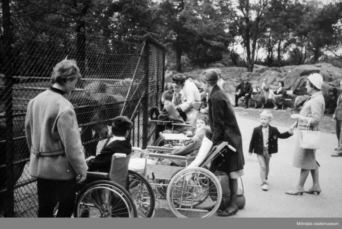 Elever och personal från Stretereds skolhem är på utflykt till Slottsskogen i Göteborg, 1964.