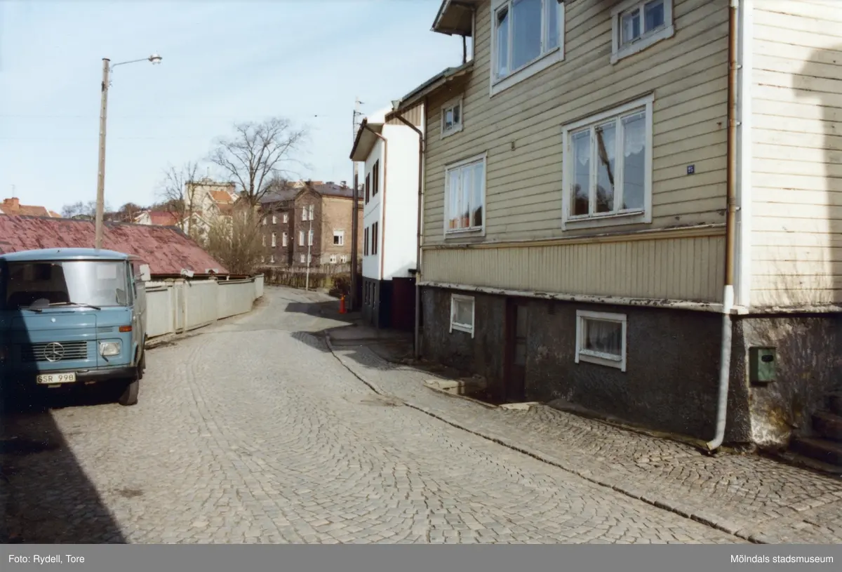 Forsåker i Mölndal på 1970-talet. Forsåkersgatan mot norr. I bakgrunden ses gamla polishuset med nr 19.