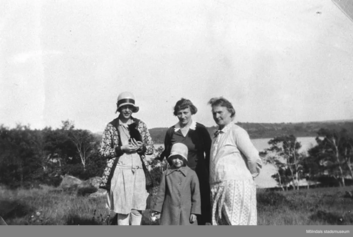 Nora Krantz står till höger och hon har besök av vänner i Stretered, 1920-tal.