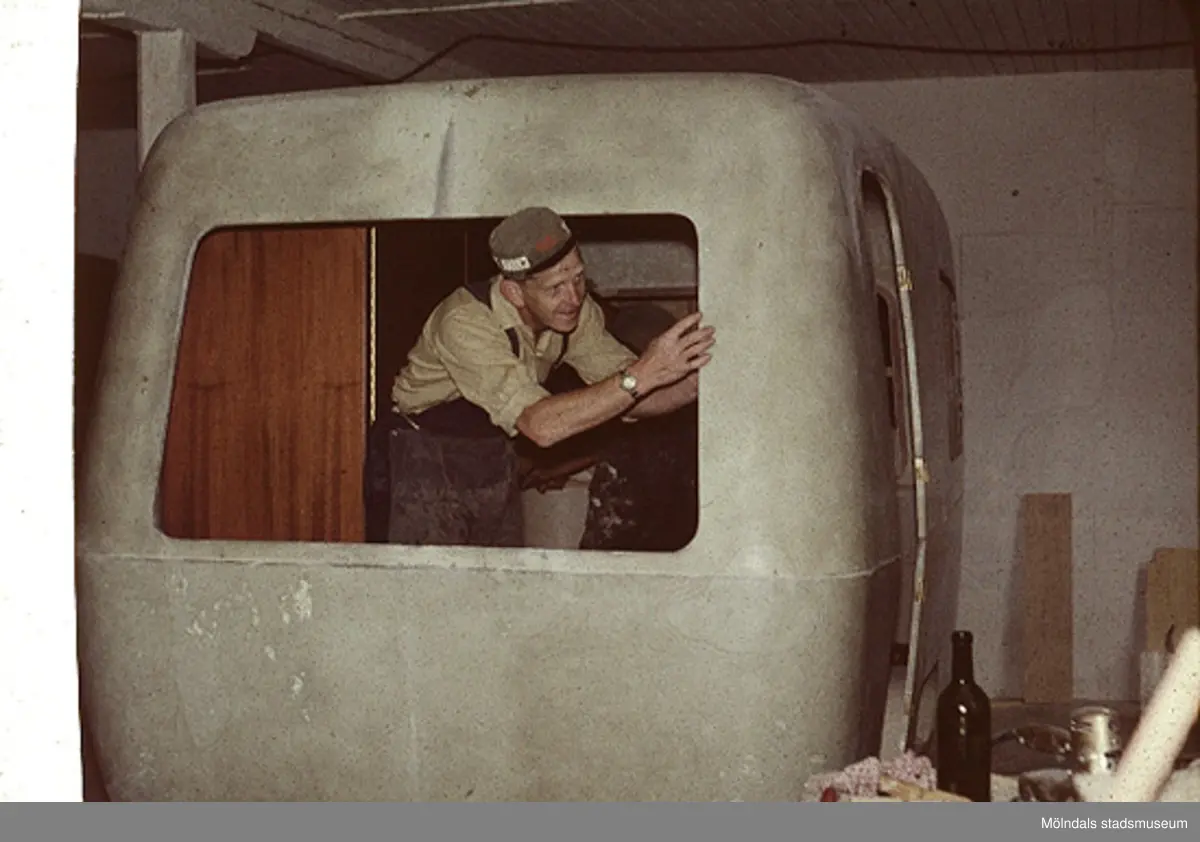Knut Johansson tillverkar en husvagn, Lamellplast, våren/sommaren 1960.