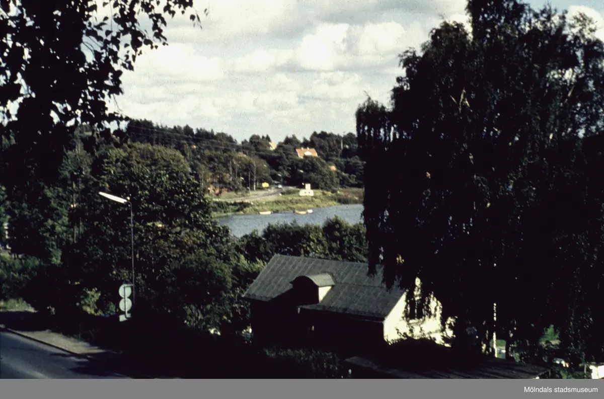 Hus vid Höjdgatan (Stensjöbacke i Mölndal), 1970-tal. I bakgrunden ses Stensjön.