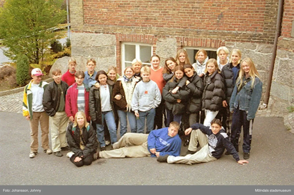 1996_1398-1401, 1404-1405 är gruppbilder av högstadieelever från Åbybyskolan 8A. Eleverna deltog i det skolpedagogiska dokumentationsprojektet ”Mölndalsbro i dag” på Mölndals museum under oktober 1996. Gruppbilder av samtliga deltagande klasser: 1996_1382-1405 och samtliga bilder från den färdiga utställningen 1996_1358-1381.