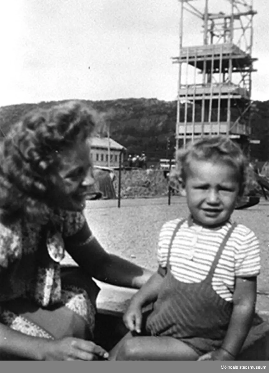 Praktikant Margit Emilsson (gift Wannerberg -52) med "älsklingsbarnet" Håkan Carlsson på Krokslätts daghem under Margits praktik som biträde: 1945-10-01 - 1946-08-01.
