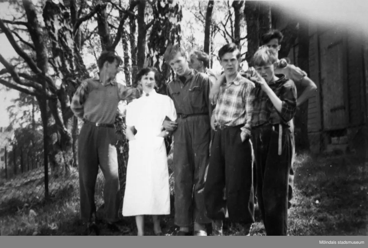 Sex stycken pojkar med en vårdarinna på Stretereds skolhem.