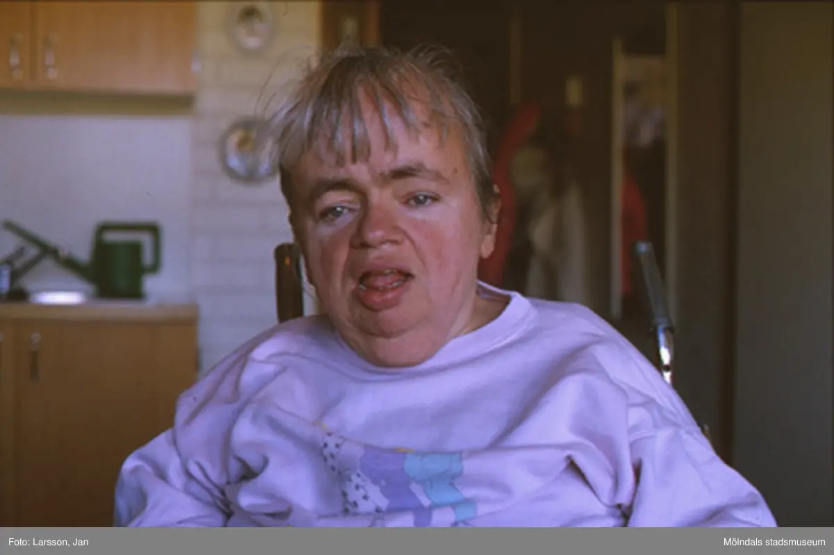 En kvinnlig boende på Stretereds vårdhem för handikappade, 1980-talet.