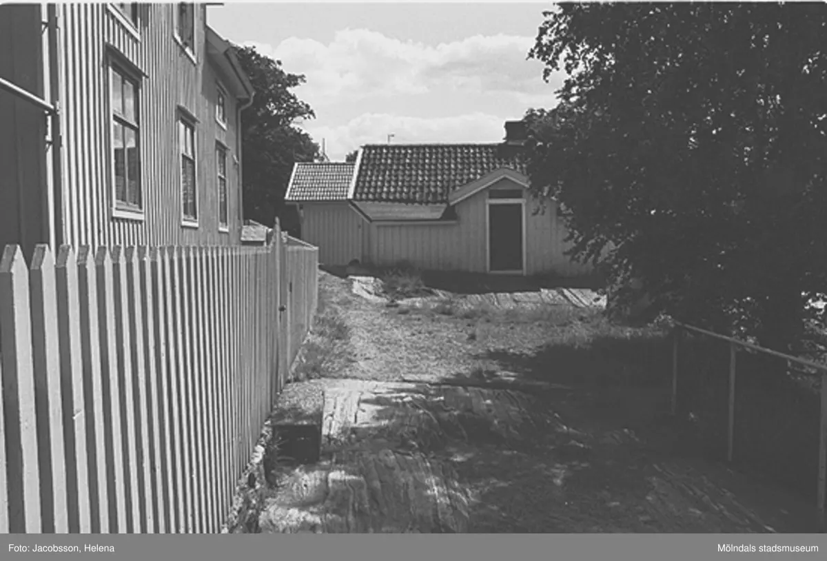 Titel: Exteriör av bostadshus med bergstomt på Roten M 29 i Mölndals Kvarnby, 1972.