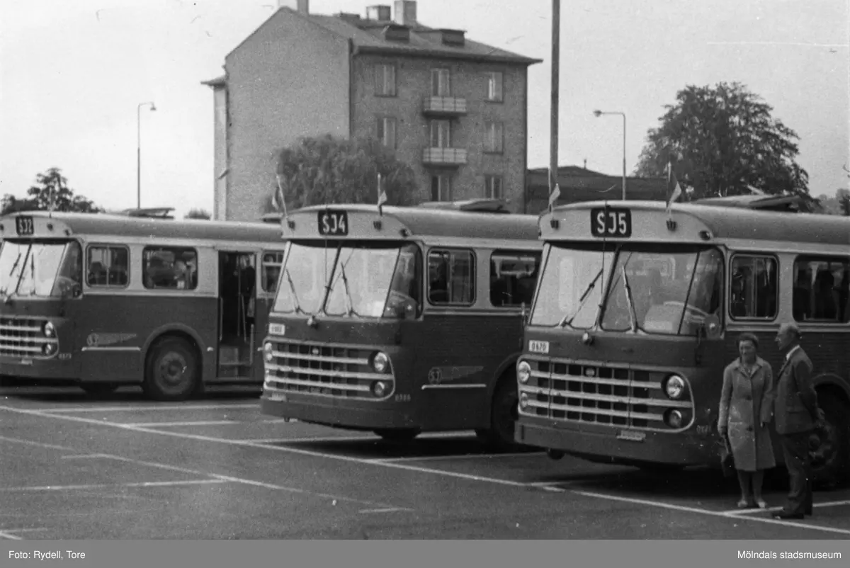 Busstationen på Nya Torget i Trädgården, Mölndal, på 1960-talet. I bakgrunden ses fastigheten Kvarnbygatan 1.