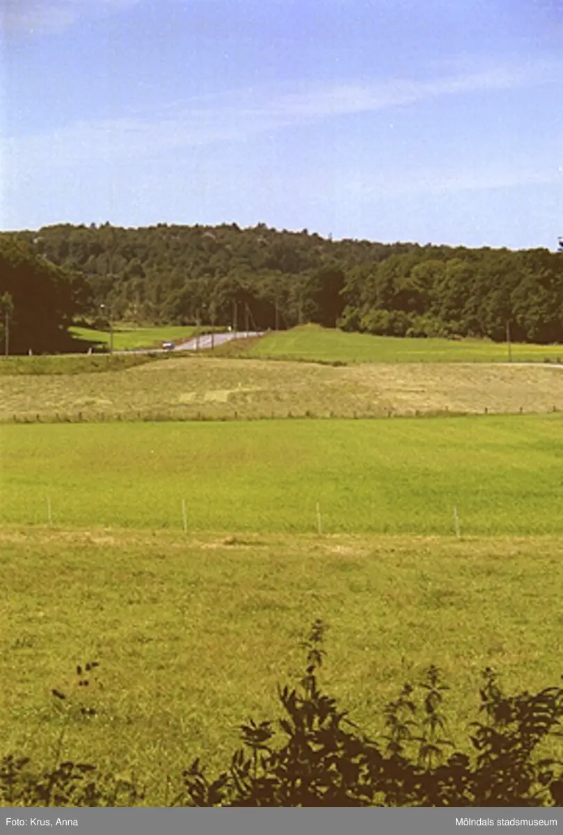 Kimmersbo. Kulturlandskap med väg i bakgrunden.