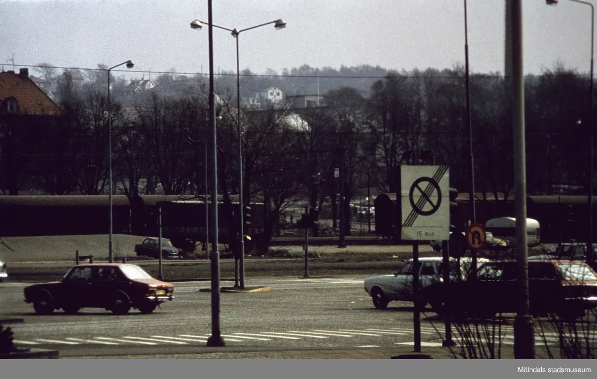 Vy från Mölndalsbro mot järnvägen. Mölndal 1970-tal.