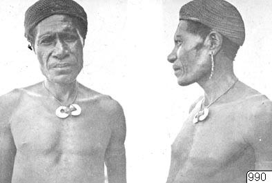 Män från byn Nerzeng vid Cromwellbergets fot. R. Neuhauss: Deutsch-Neu-Guinea.