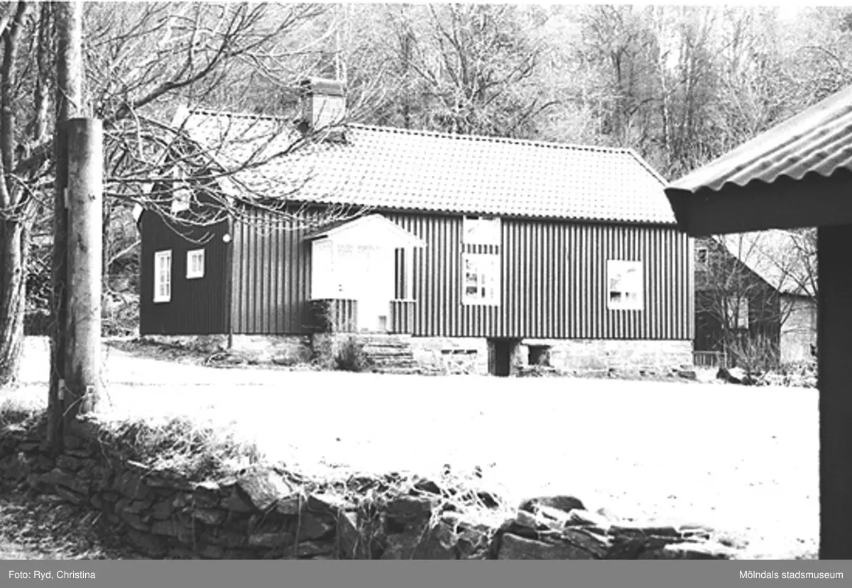 "Månses" i Greggered, Lindome, Huset Ligger i backen där man kör upp till Holmen, nästan mitt för kapellet. Bilden är tagen under 1990-talet.