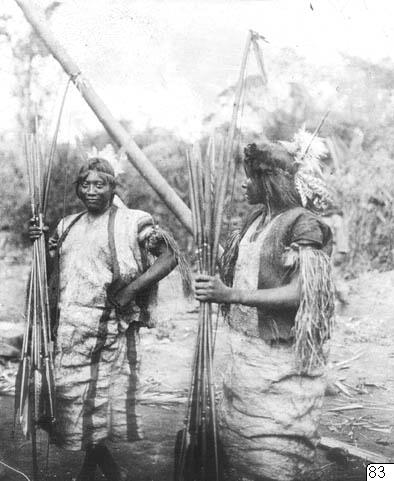 Två indianer med vapen. Se Nordenskiöld: Forskningar och äventyr etc. Stockholm 1915, bild 177. Bildark: 5731. Neg. nr: 2218.