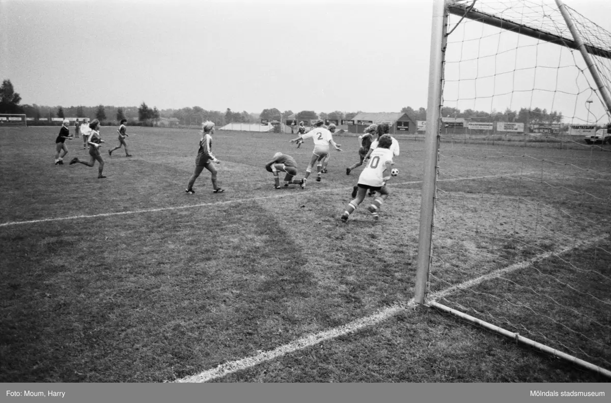 Flickfotboll på Kållereds idrottsplats i Stretered, Kållered, år 1983.
