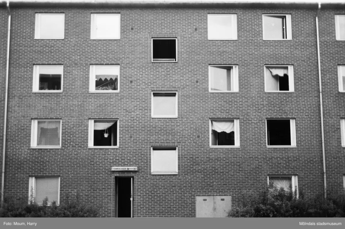 Eldsvåda på Våmmedalsvägen i Kållered, år 1983. Vädring av lägenheterna efter branden.