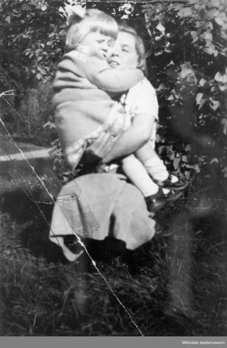 Inga-Lill Lipovsék, 5 år, i famnen på sin mor, år 1952. Inga-Lill bodde på Stretereds vårdhem från två års ålder till vuxen ålder.