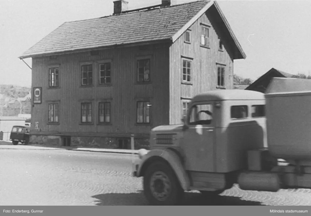 Titel: Kungsbackavägen 13, som revs 1962. I detta hus fanns Bröderna Karlssons rörledningsfirma och tidigare A. Niklasson charkuteri.