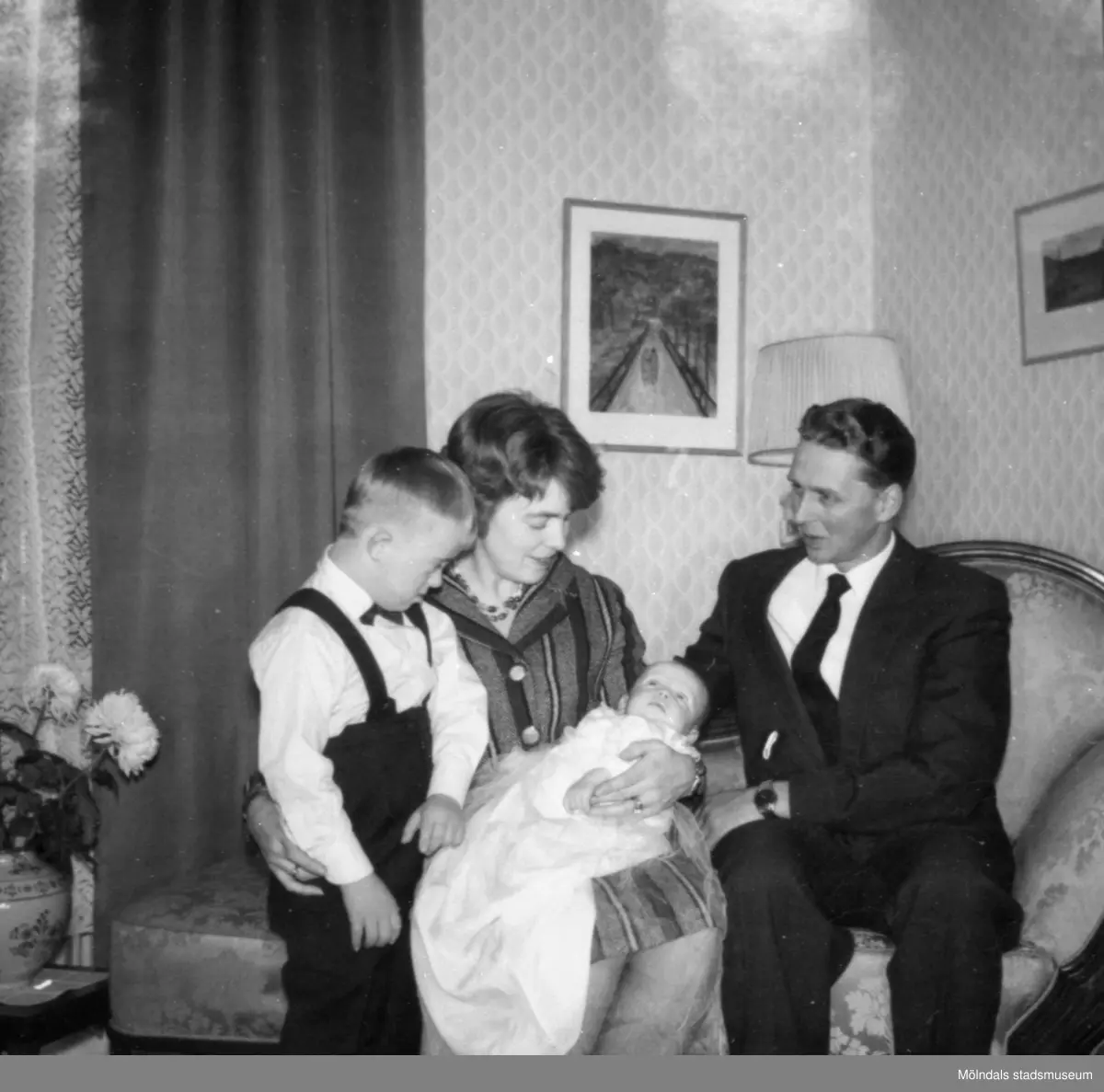 Maj-Britt och Roland Nilsson, vaktmästare på Gunnebo slott, samt deras två barn, 1962.