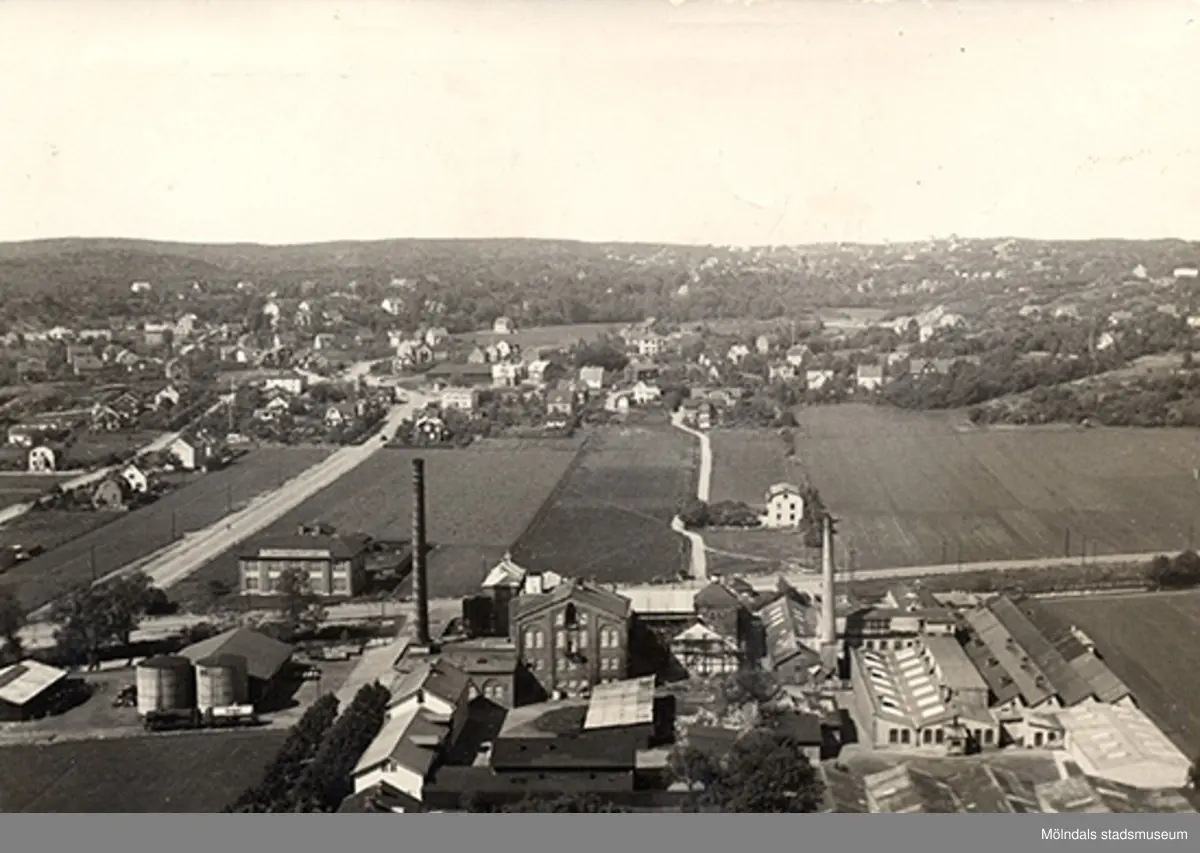 Vy västerut från Rallarberget över Göteborgs Jästfabrik "Jästis" och en del av Krokslätt, cirka år 1930.