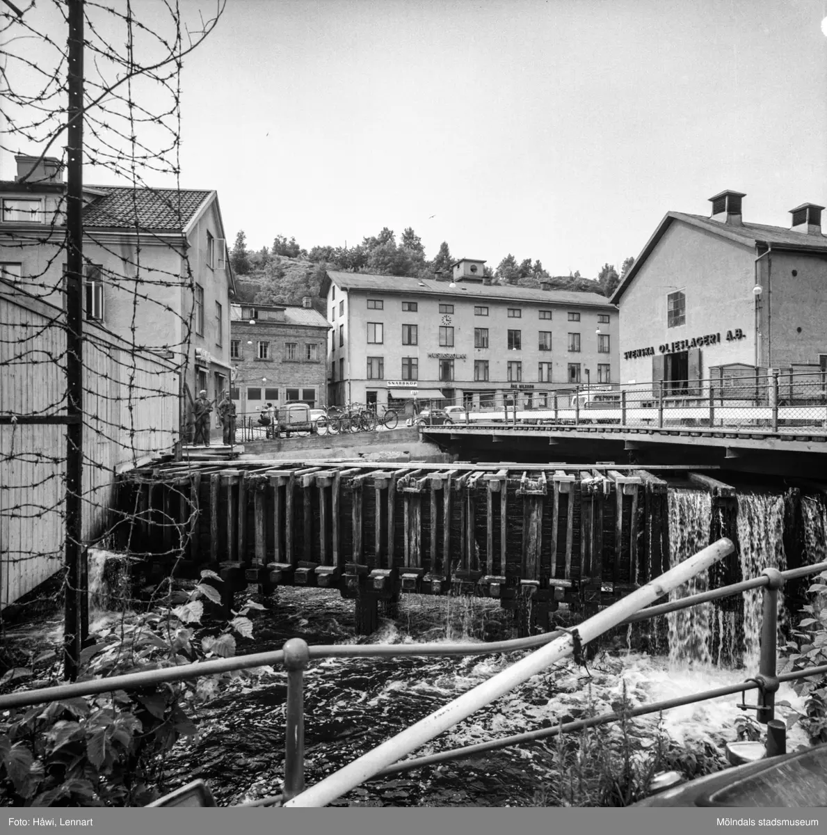 Titel: Mölndalsån nedströms Forsebron. Mölndal, 28/6 1963.