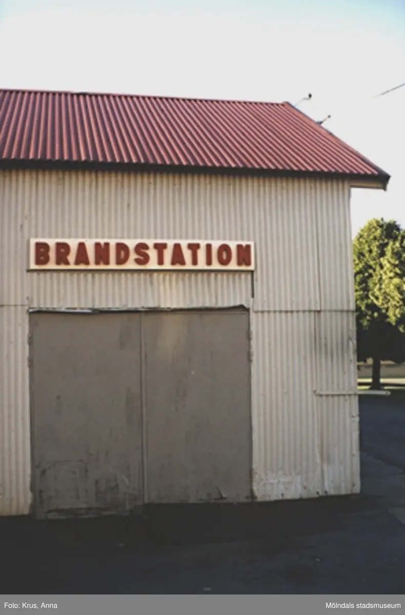 Kängurun 18. Krokslätts fabriker. Skylt på södra fasaden av gamla brandstationen.