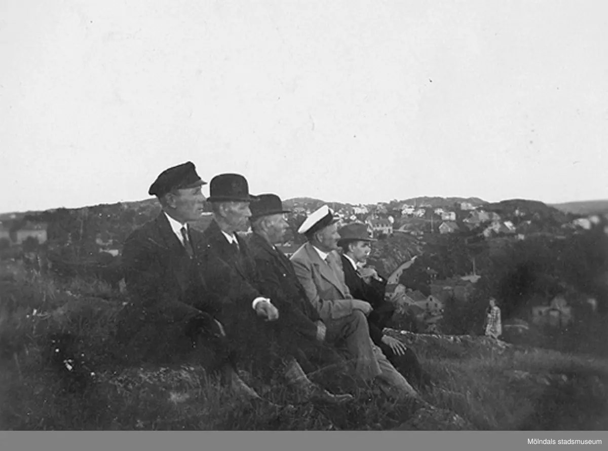 De sitter uppe på Störtfjället, Enerbacken 1928. Kvarnbyn syns i bakgrunden.