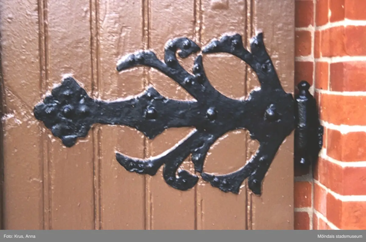 Fässbergs kyrka. Detalj av gångjärn på kyrkport.