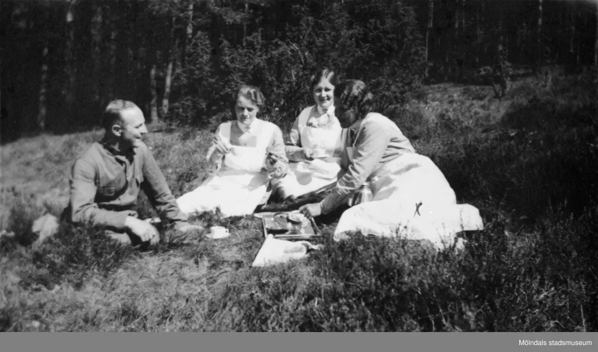 Sjögren, Amia, föreståndaren Anna Lindström och Alice Karlsson som arbetade i Arbetshemmet på Stretereds skolhem, 1936.