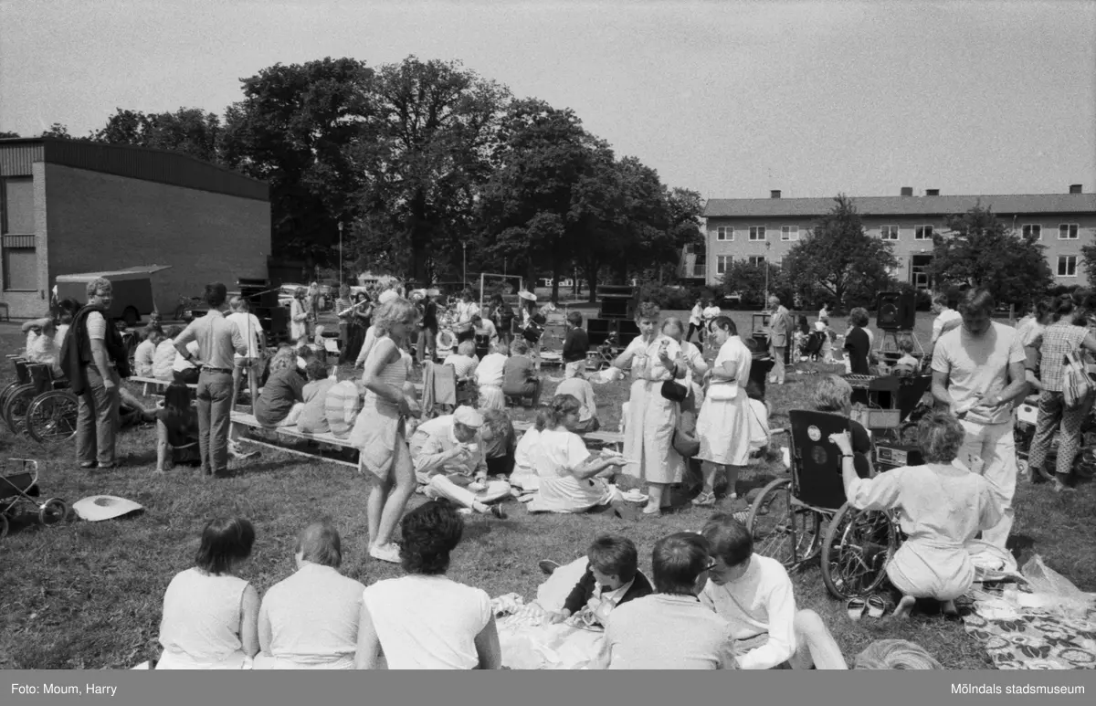 Marknad och musikuppträdande på Stretered i Kållered, år 1984. Fotografi taget av Harry Moum, HUM, Mölndals-Posten.