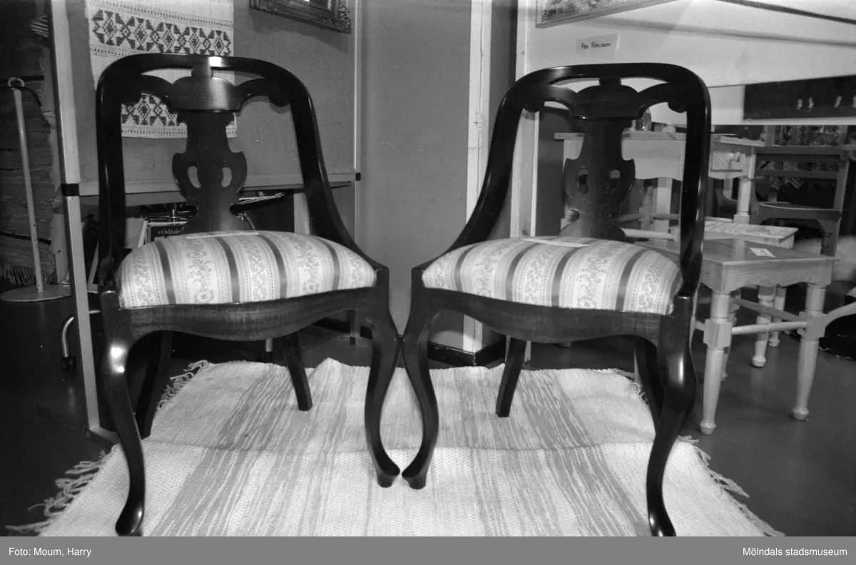 Utställning på Almåsgården i Lindome, år 1985. Två göteborgsstolar.