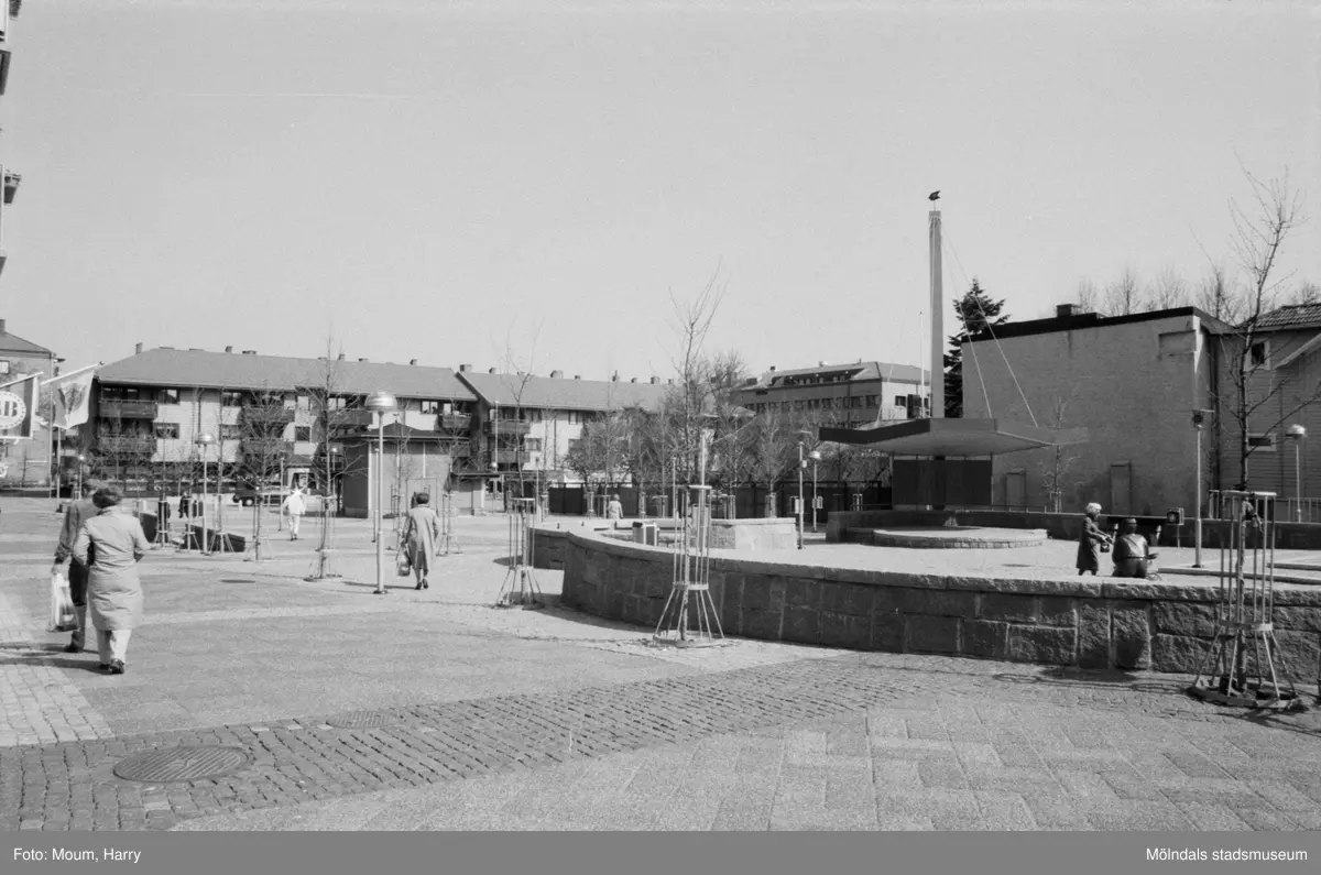 Vy från Mölndals torg, år 1985. Fotografi taget av Harry Moum, HUM, Mölndals-Posten.
