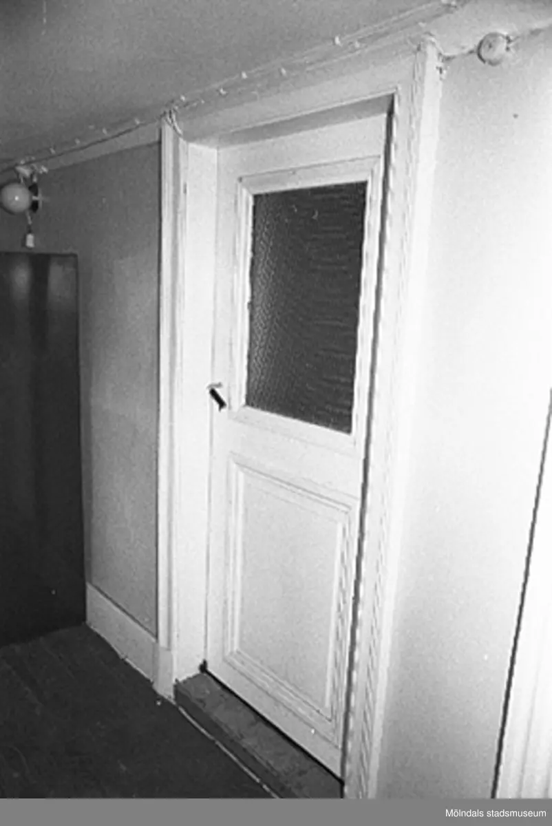 Kvarnfallet 31 i Grevedämmet, hösten 1994. Interiör i fabriksbyggnad. Byggnadsdetalj: Dörr.
