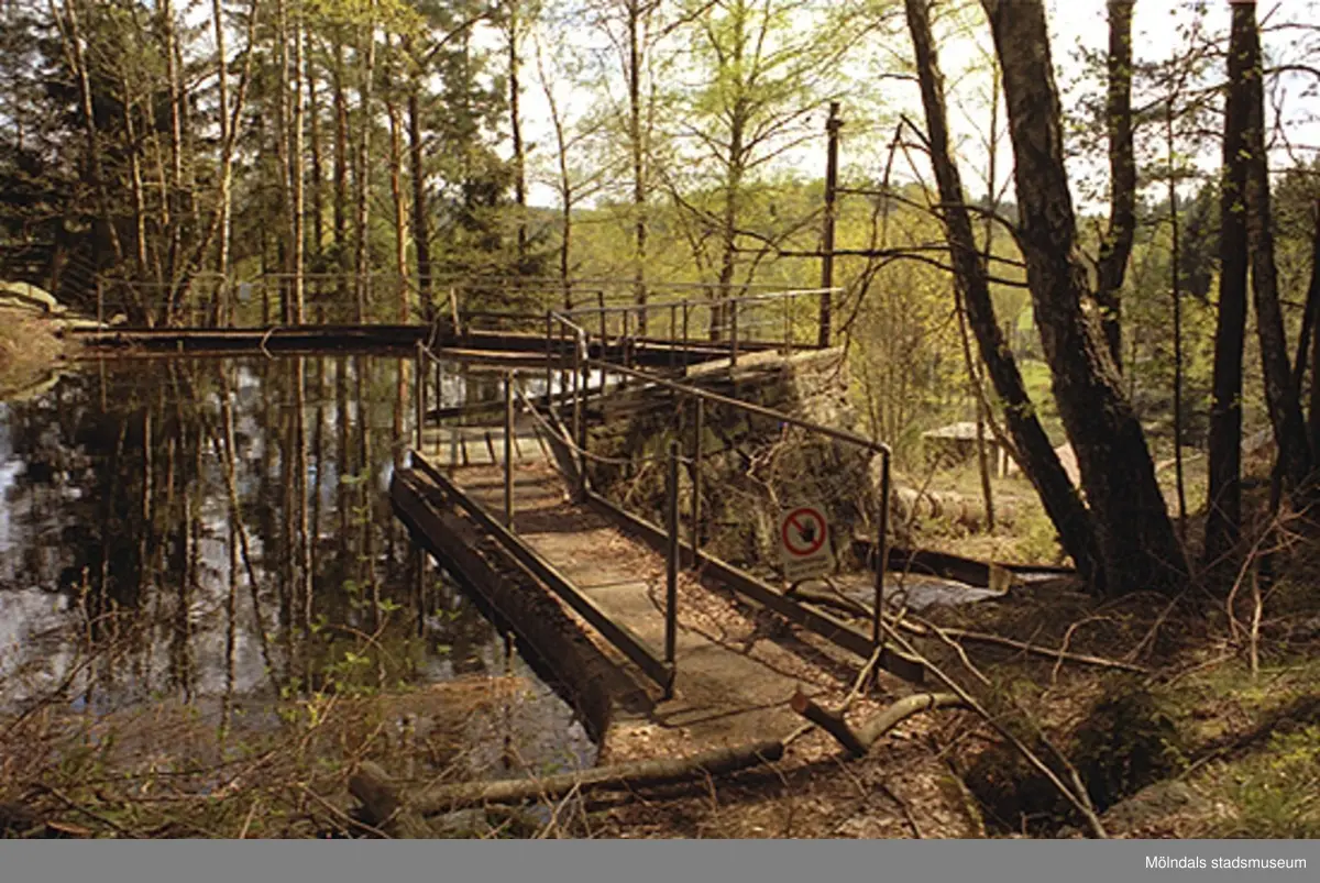 Vattendämme norr om Djupedala vattenkraftverk, sett från väster i maj 1998. Hör ihop med: 2002_0842 - 0854.