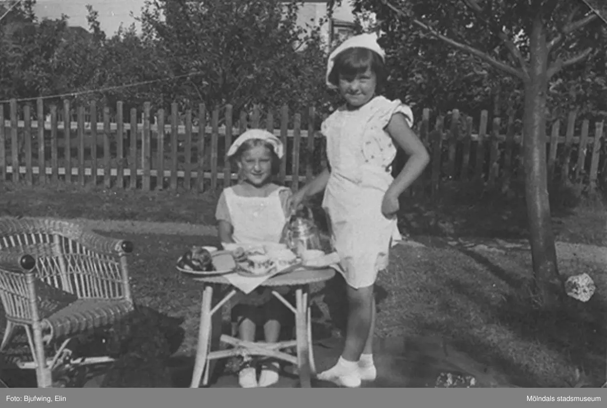 Lillemor med kompisen Ing-Marie på Barnhemsgatan 13, 1934. Fotografen Elin var lillasyster till Osar Andersson, Brittas morfar.