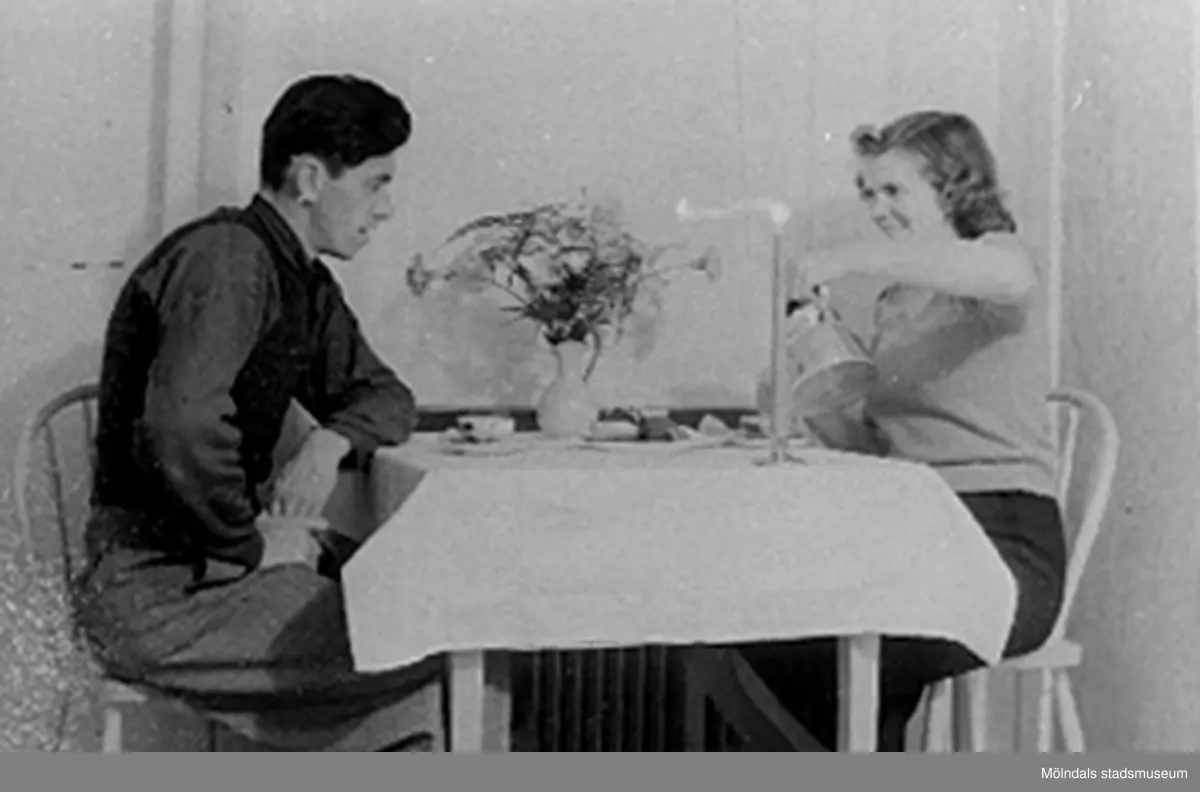 Bilden är tagen under en kaffepaus hemma. Under fotot står "KAFFE ÄR GOTT".