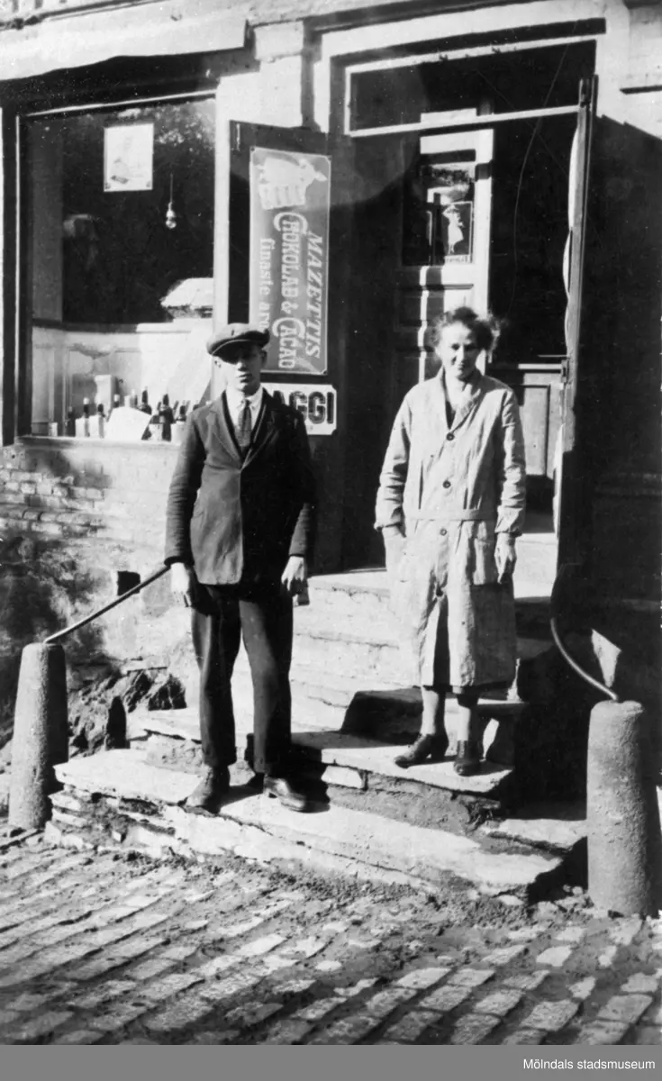 Örns affär vid "Kråkan" i Mölndal. Vid ingången, på trappan står en man och en kvinna (som troligen arbetar i affären).