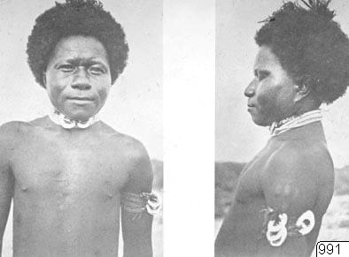 Motiv: 3 fotos: Infödingstyper från olika byar. Lokal: Foten av Cromwell-berget, Papua Nya Guinea. Foto: Fotograf okänd, datum okänt. Erh: köp av Walter Kauderns bildmatrial, 1947. Publ: R. Neuhauss: Deutsch Neu Guinea. Bd. II. Berlin 1911. Taf. 204, 221, 228 (Katalogkort)