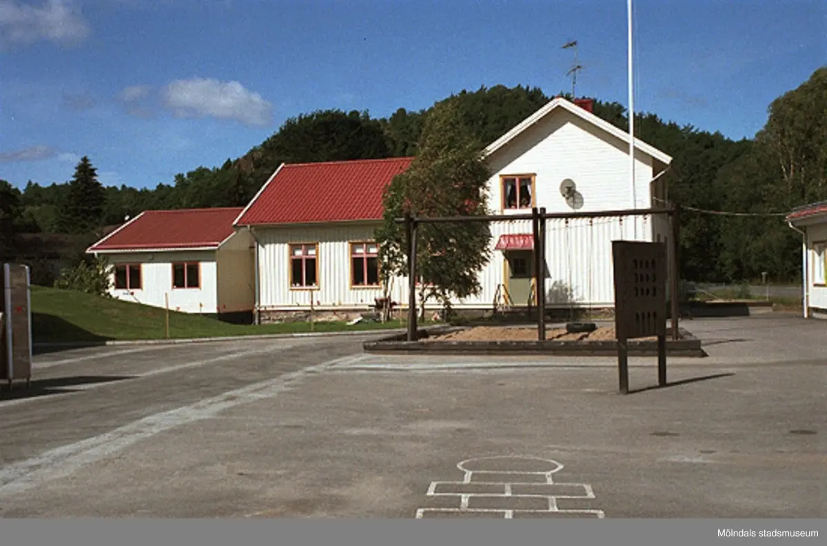 Hällesåkersskolan, Hällesåker 4:56 i Lindome. Vy från söder, 1998-08-19.