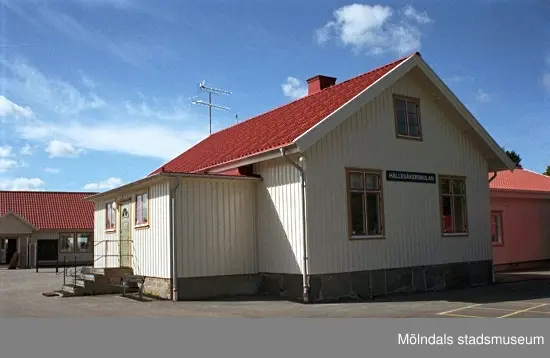 Hällesåkersskolan, Hällesåker 4:56 i Lindome. Vy från söder, 1998-08-19.