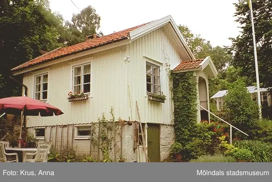Greggered. Bostadshus med växthus till höger sett från sydost.