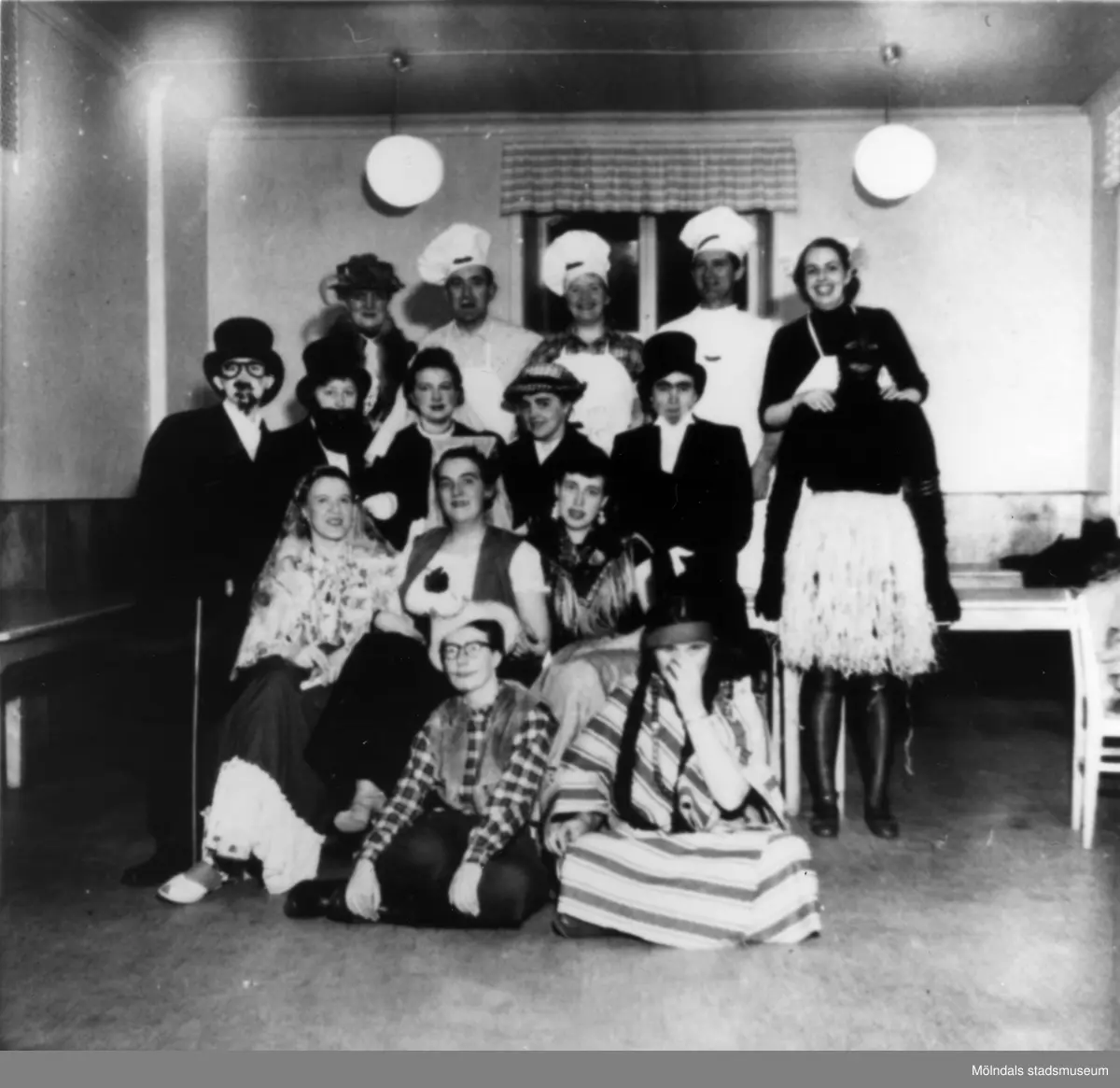 Personalfest på Streteredshemmet i Kållered, år 1955. Övre raden: Lilly Franzén, Folke Ahl, okänd, Nils Malmqvist. I rutig blus: Gulli Ferlin.