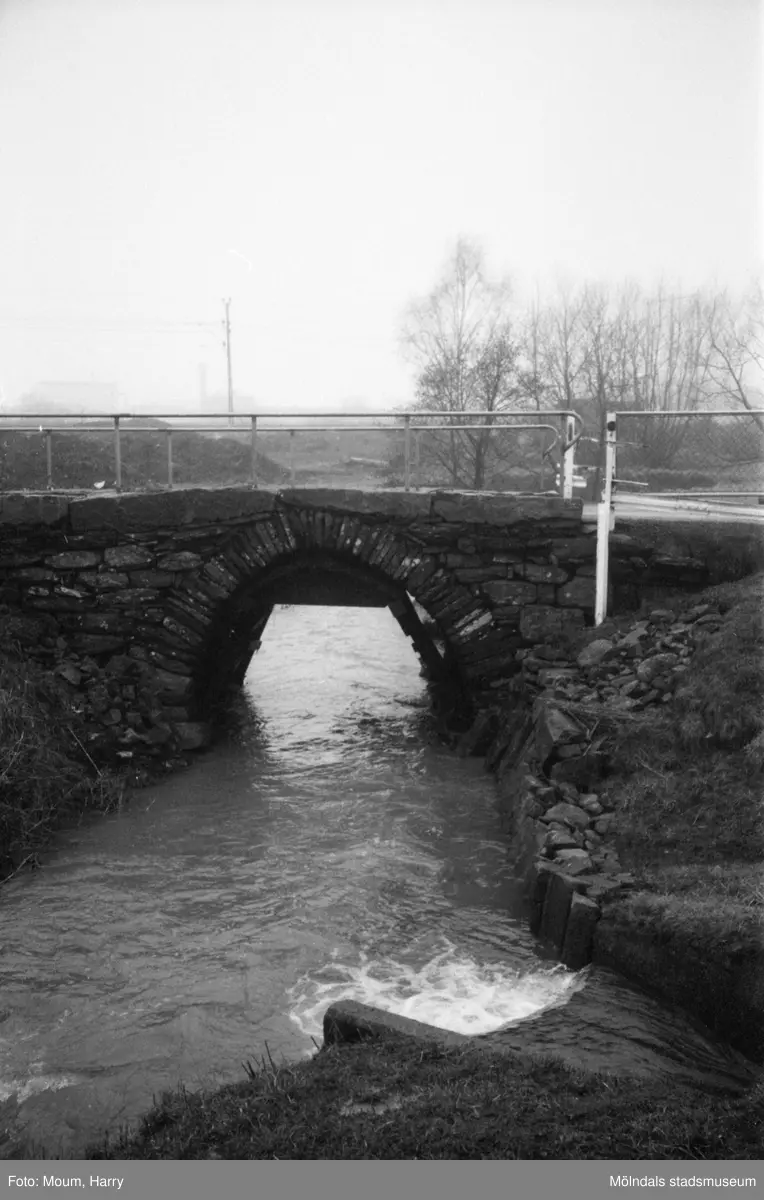 Gammal stenbro över Kålleredsbäcken i Rävekärr, år 1984. "Bron över till kommunens växthus ett stenkast därifrån är gammal som Methusalem. Månne tro om den nye konstruktionen håller lika länge."