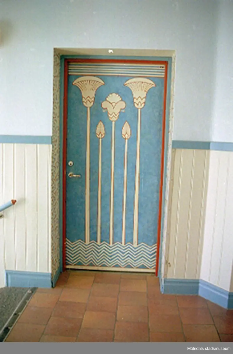 Dekormålad innedörr i trapphuset på Krokslättsskolan, 2002-03-07.