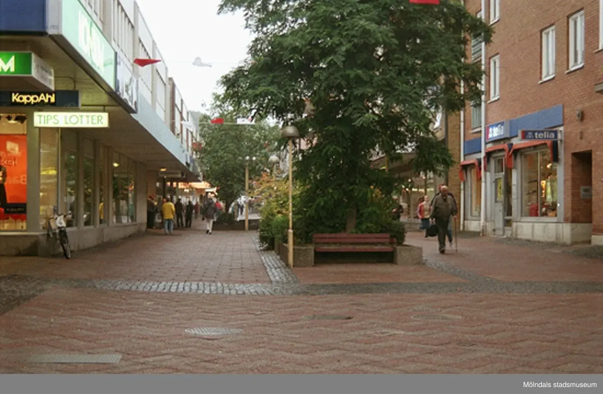 Brogatan västerut. Mölndalsbro i dag - ett skolpedagogiskt dokumentationsprojekt på Mölndals museum under oktober 1996. 1996_1188-1189 är gjorda av högstadieelever från Kvarnbyskolan 9D, grupp 3. Se även 1996_0913-0940.