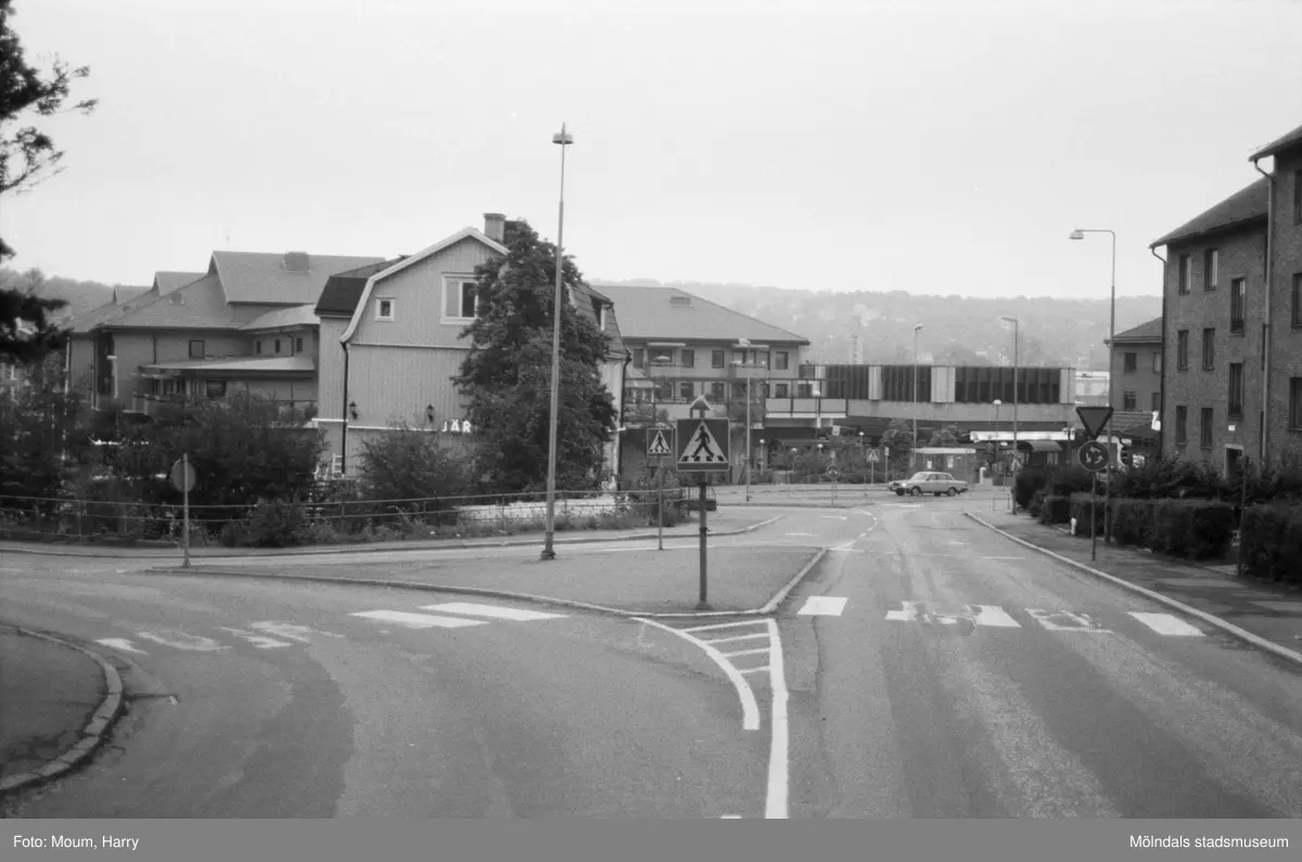 Vy från Frölundagatan mot Järnhandlarerondellen i Mölndal, år 1984.