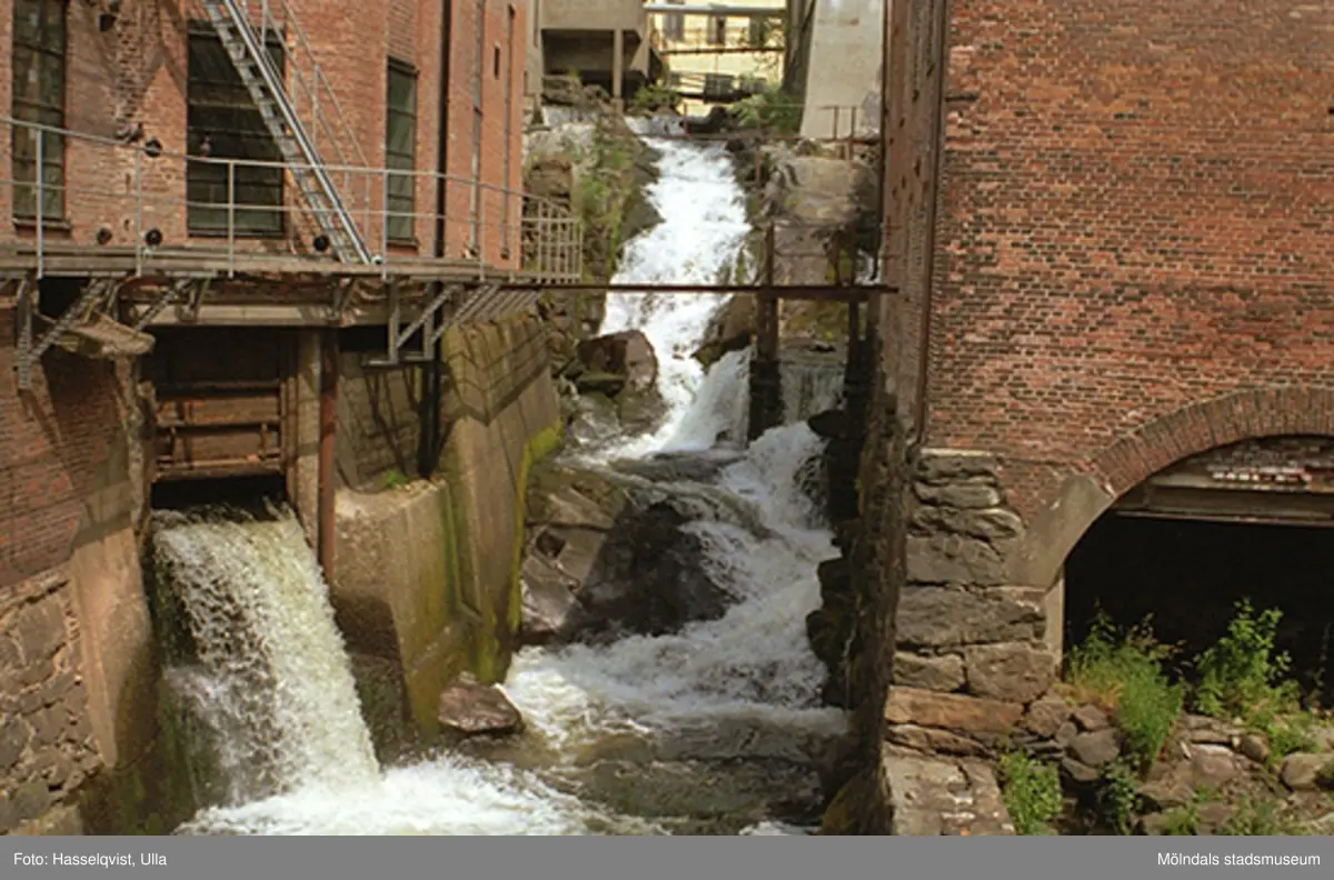 Titel: Kulturmiljön vid forsen i Mölndals kvarnby, 1997-07-08.
