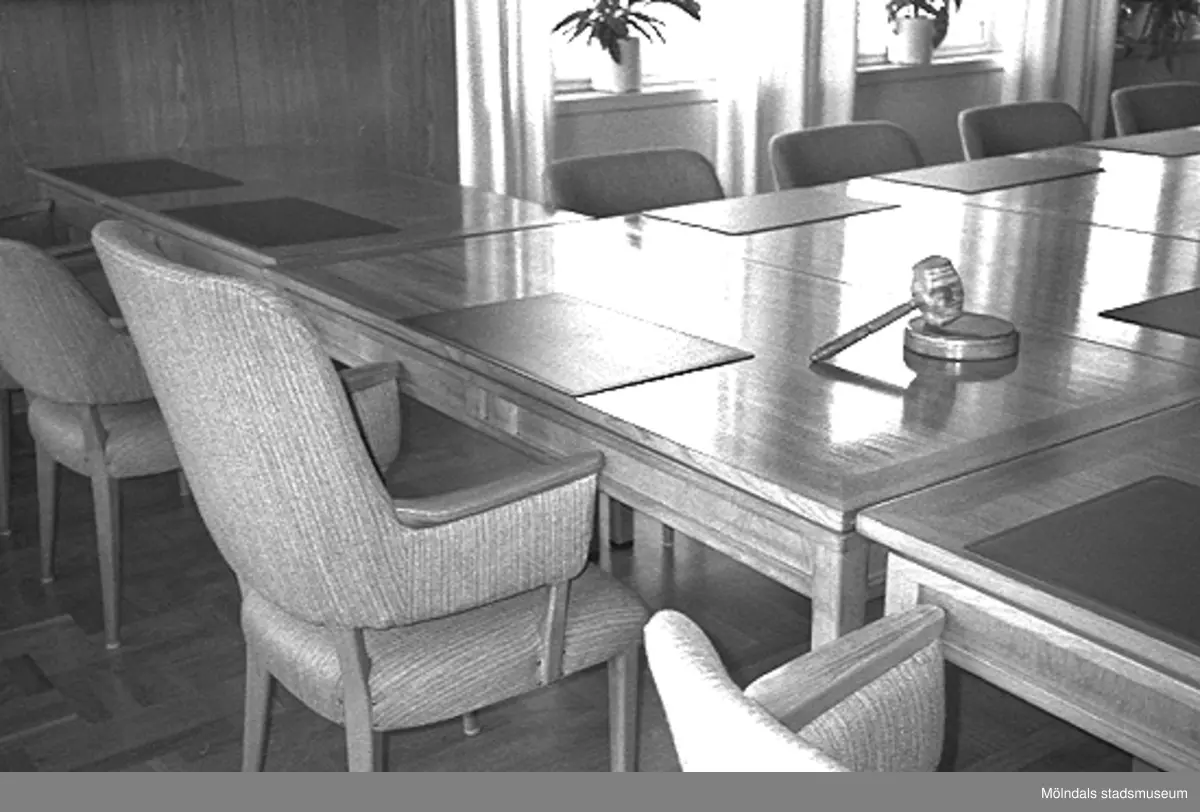 Mölndals stadshus, juni 1994. Stolar och bord i ett sammanträdesrum.