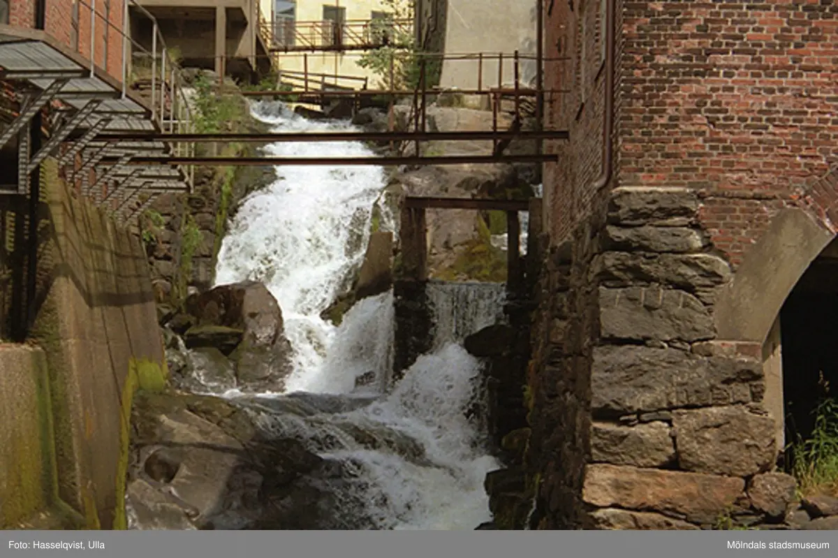 Titel: Kulturmiljön vid forsen i Mölndals kvarnby, 1997-07-08.