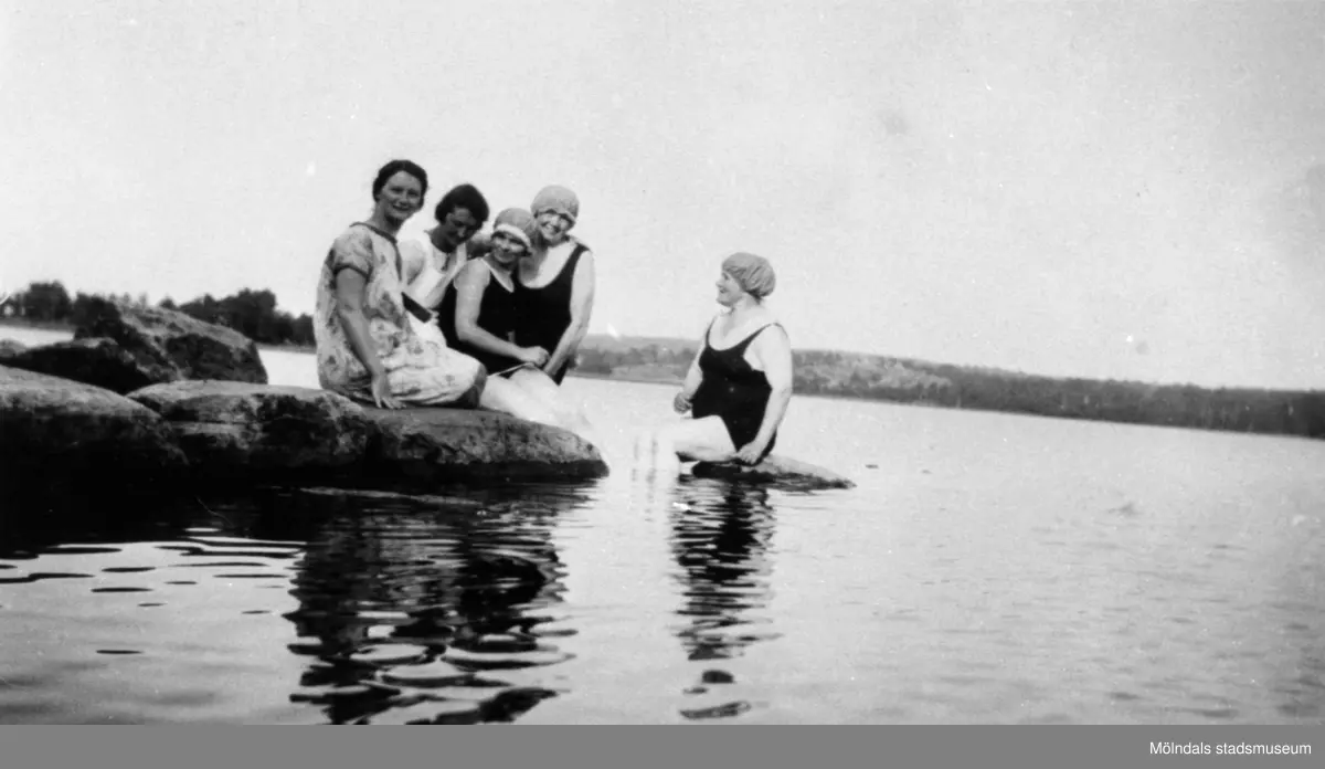 Personal och elever från Stretereds skolhem badar i Tulebosjön, 1927